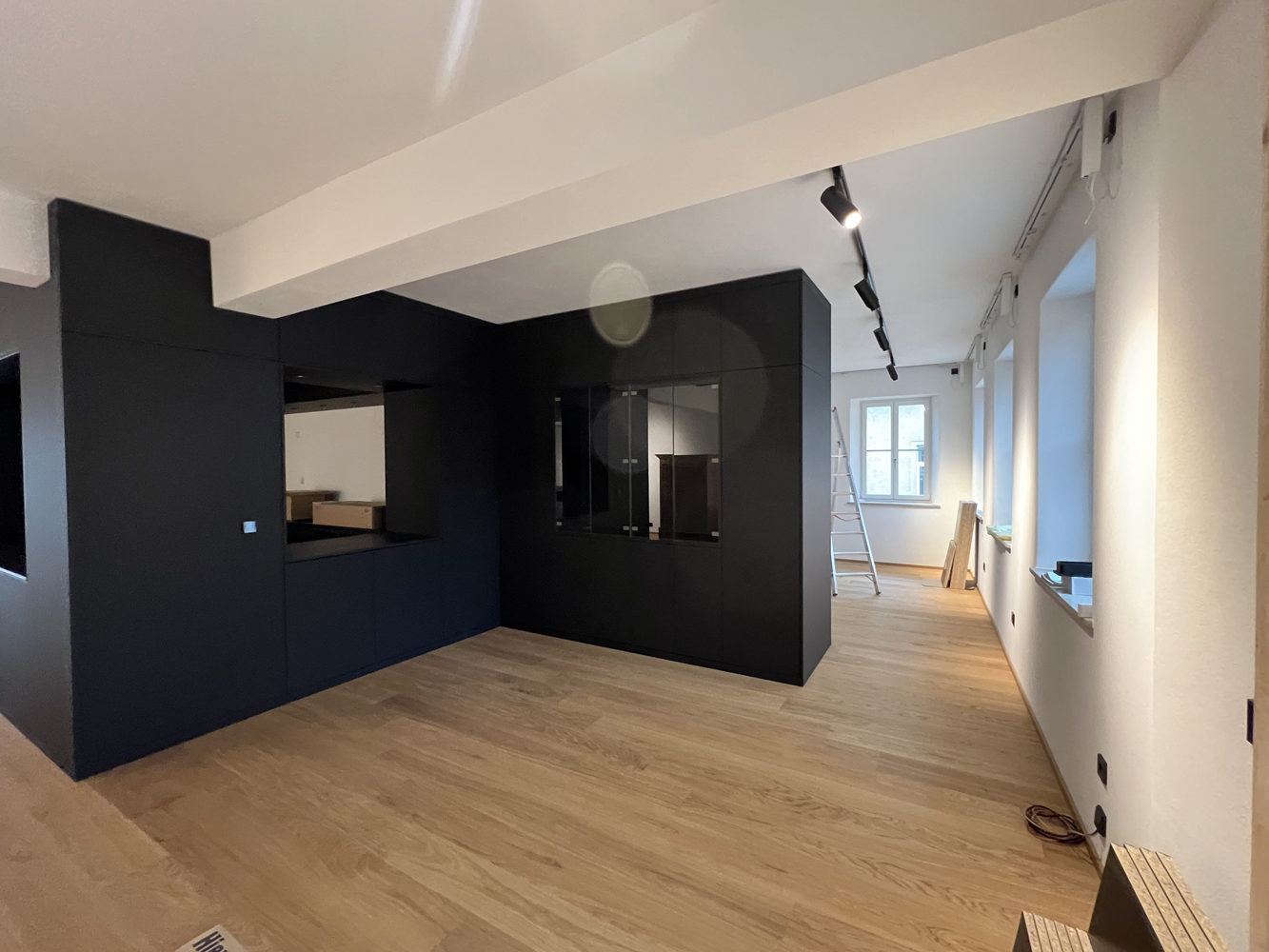 Im Erdgeschoss konnte das Architekturbüro und eine kleine Wohnung eingebaut werden, im Obergeschoss befinden sich nun zwei Wohnungen.