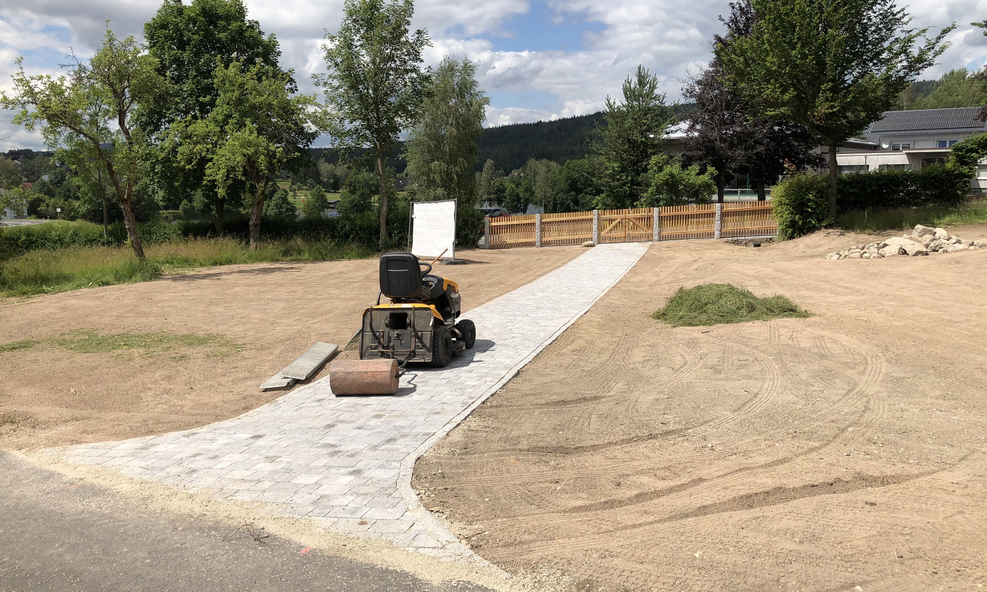 Neben einer einfachen Gestaltung war es das Ziel, eine naturnahe Blühwiese zu erhalten. Ergänzend werden noch mehrere Obstbäume von alten Obstsorten gepflanzt.