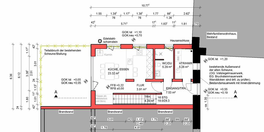 Das Gebäude ist Hofseitig weiterhin in der gleichen Optik und behält dort die bestehenden Fenster- und Türöffnungen aus dem Bestand bei.
